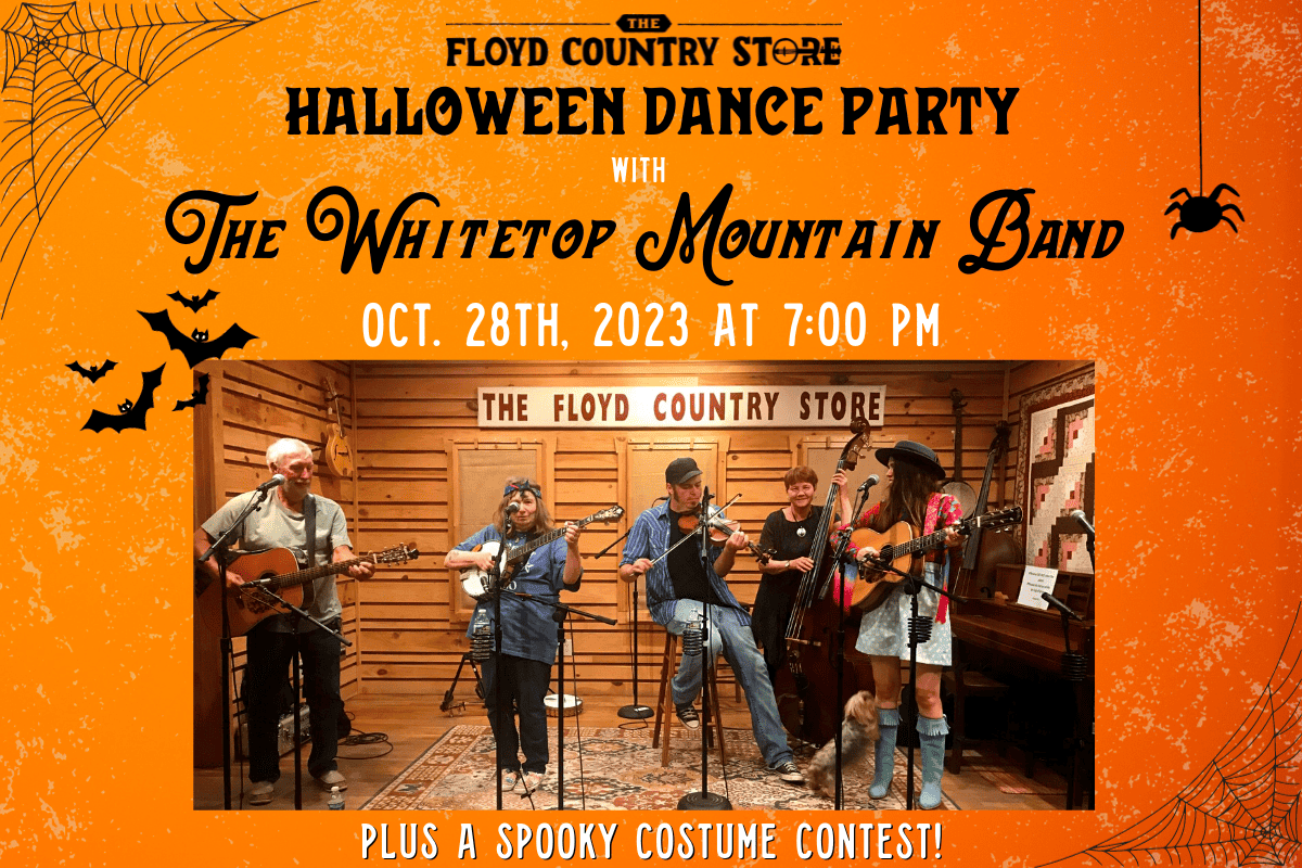 The Floyd Country Store presents a Halloween Dance Party with The Whitetop Mountain Band on Saturday, October 28, 2023.