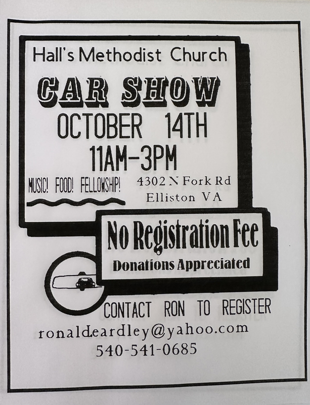 Hall's United Methodist Church presents a Car Show on Saturday, October 14, 2023.