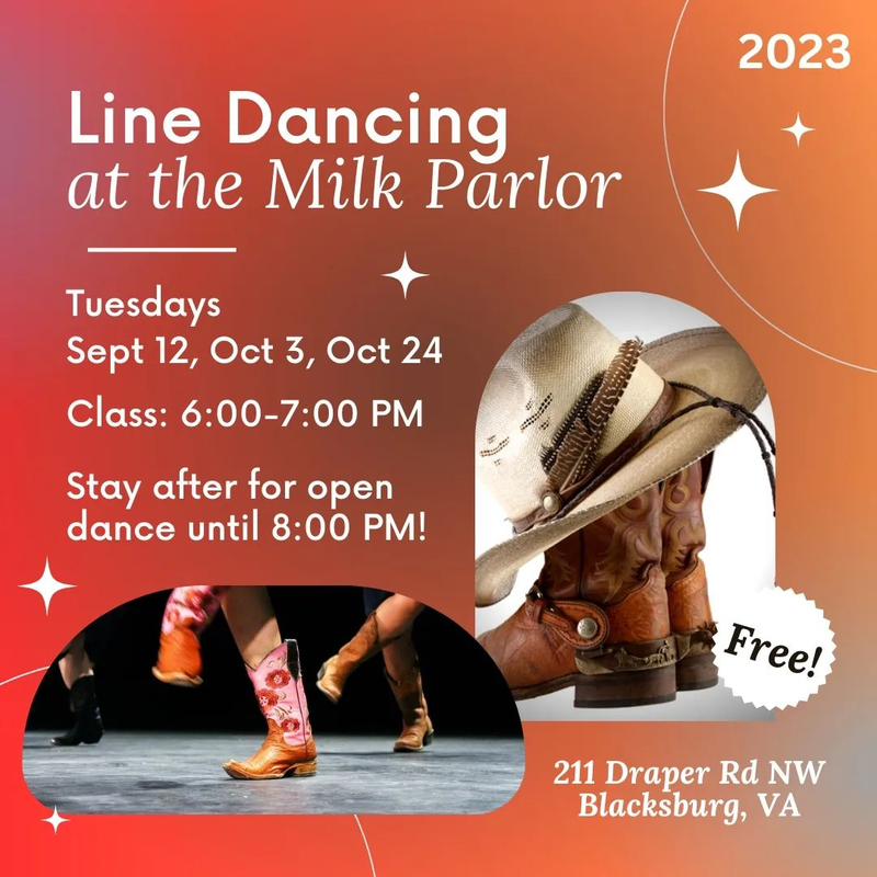 The Milk Parlor presents a Free Line Dancing Class on Tuesday, October 24, 2023.