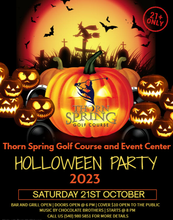 Thorn Spring Golf Course presents their 2023 Halloween Party with music by the Chocolate Brothers on Saturday, October 21, 2023.