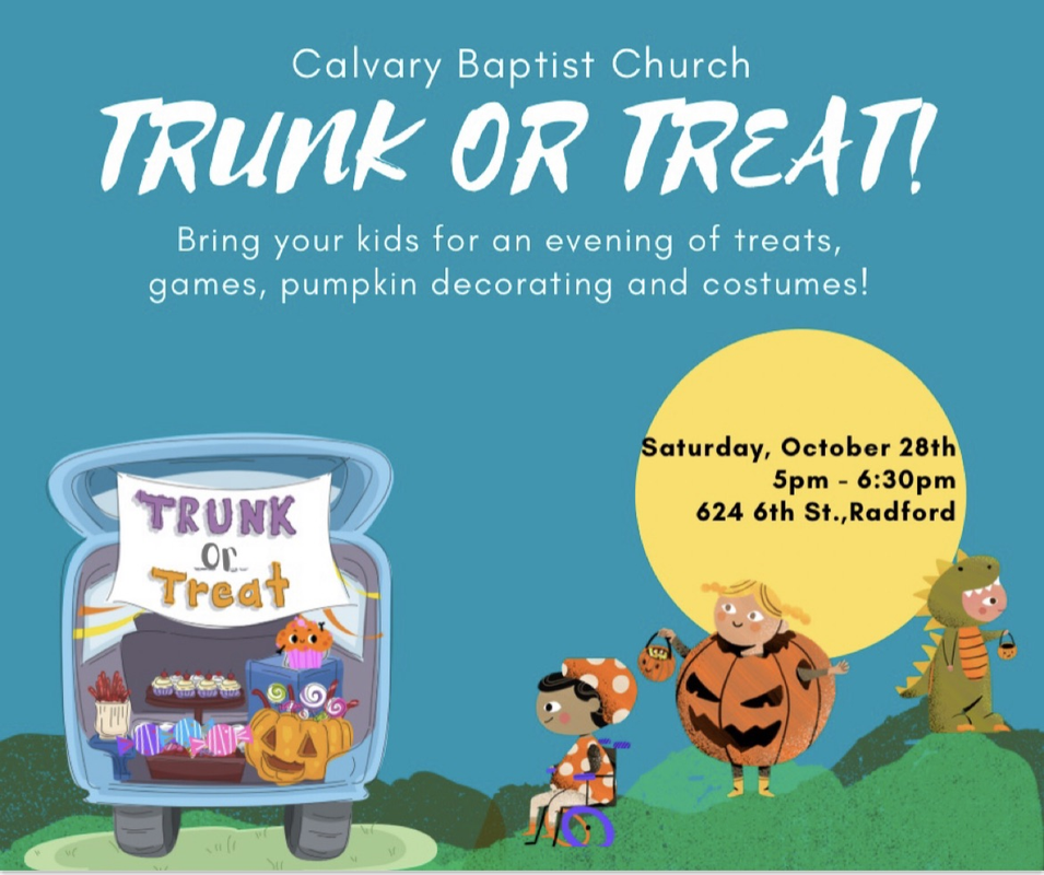 Calvary Baptist Church presents their 2023 Trunk or Treat on Saturday, October 28, 2023.