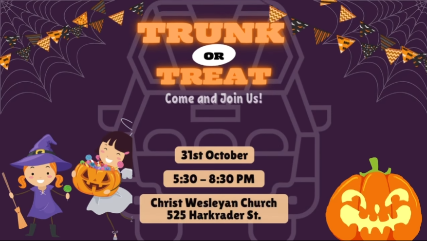 Christ Wesleyan Church presents their 2023 Trunk or Treat on Tuesday, October 31, 2023.
