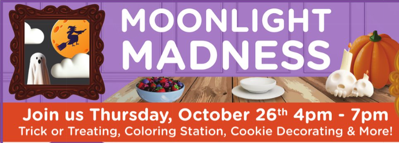 Join us for Trick or Treating, coloring station, cookie decorating and more!