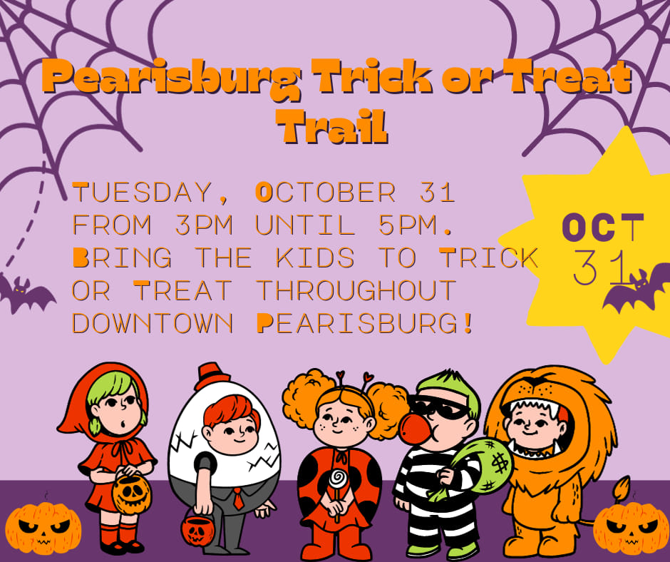 The Pearisburg Merchants Association presents the 9th Annual Downtown Pearisburg Trick or Treat Trail on Tuesday, October 31, 2023 in downtown Pearisburg, VA.