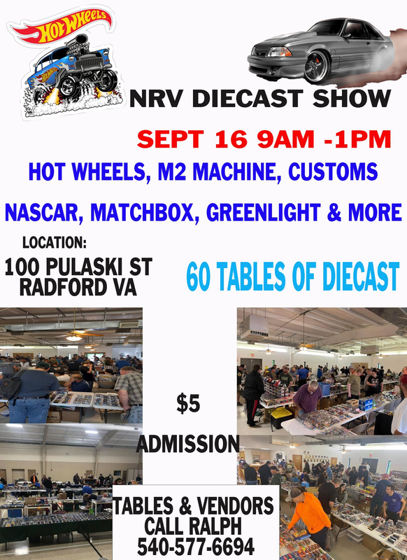 Browse from over 60 tables of diecast vehicles and collectibles including Hot Wheels, M2 Machines, Greenlight Collectibles, Matchbox, Customs and NASCAR! Door prizes will be awarded. Enjoy a ton of Diecast and dealers wanting that want to make some deals!