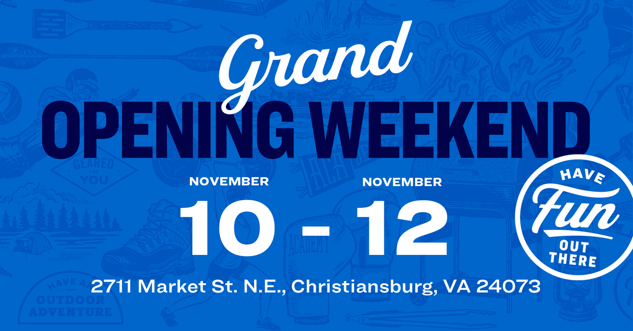 Academy Sports + Outdoors (Christiansburg, VA) presents their three-day Grand Opening starting on Friday, November 10, 2023 through Sunday, November 12, 2023.