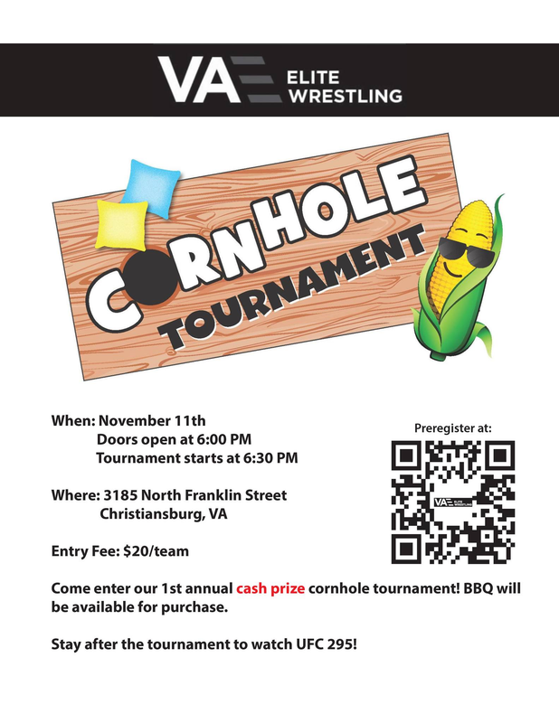 VA Elite Wrestling presents their 1st Annual Cornhole Tournament on Saturday, November 11, 2023 at the VA Elite Hall.