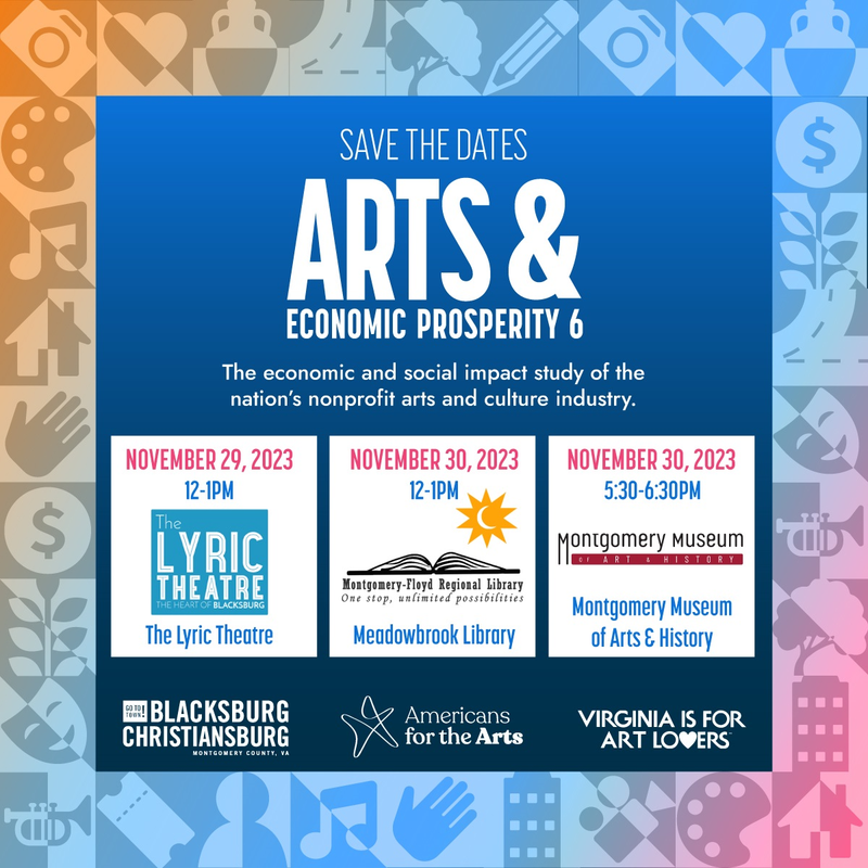 Join us for an enlightening journey into the dynamic interplay of the arts and the local economy orchestrated by the Blacksburg-Christiansburg-Montgomery County Regional Tourism Office. Explore how the arts and the economy work together to grow and strengthen this community.