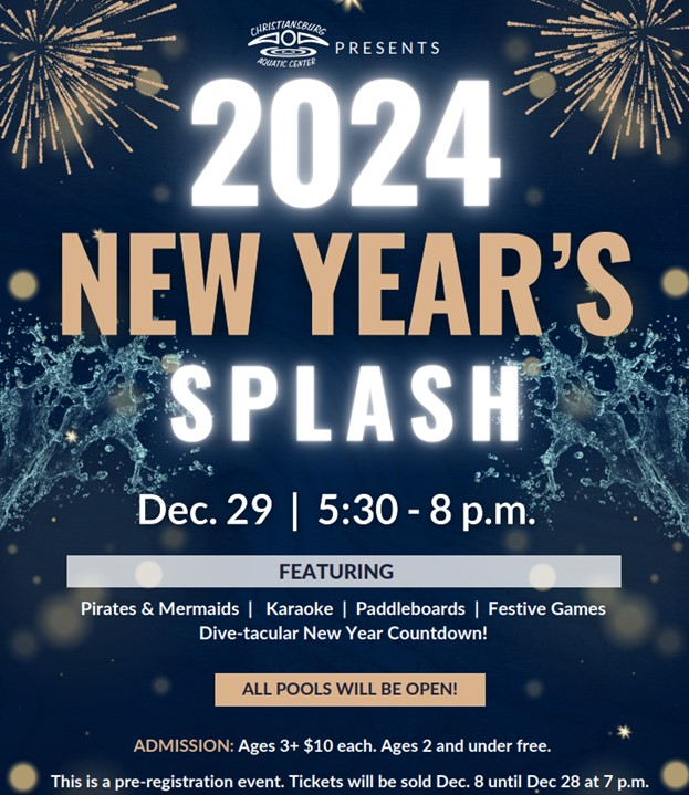 Christiansburg Aquatic Center presents the 2024 New Year's Splash on Friday, December 29, 2023.
