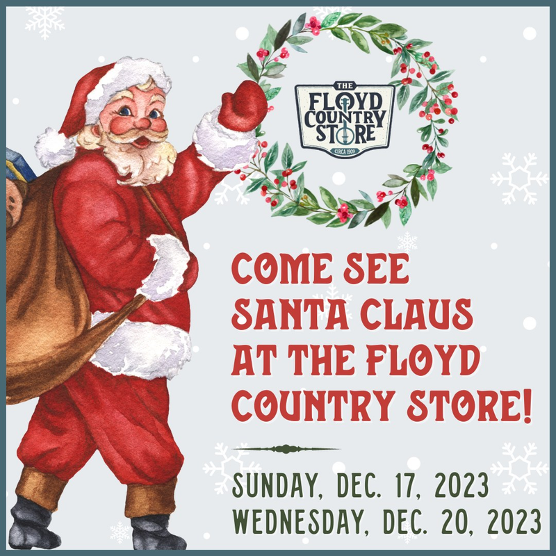 Mark your calendars, Santa is coming to The Floyd Country Store! Join us for a fun, festive evening with Santa Claus! Photos are welcome.