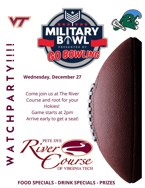 The Pete Dye River Course presents a Virginia Tech Hokie Football Watch Party for the Military Bowl on Wednesday, December 27, 2023.
