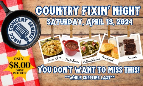 https://www.facebook.com/profile.php?id=100065036704283This event will also feature a "Country Fixin’ Night" while supplies last with the meal being sold for $8.00. The Country Fixin' meal will include fried okra, pinto beans, collard greens, cornbread, brownie and a drink.