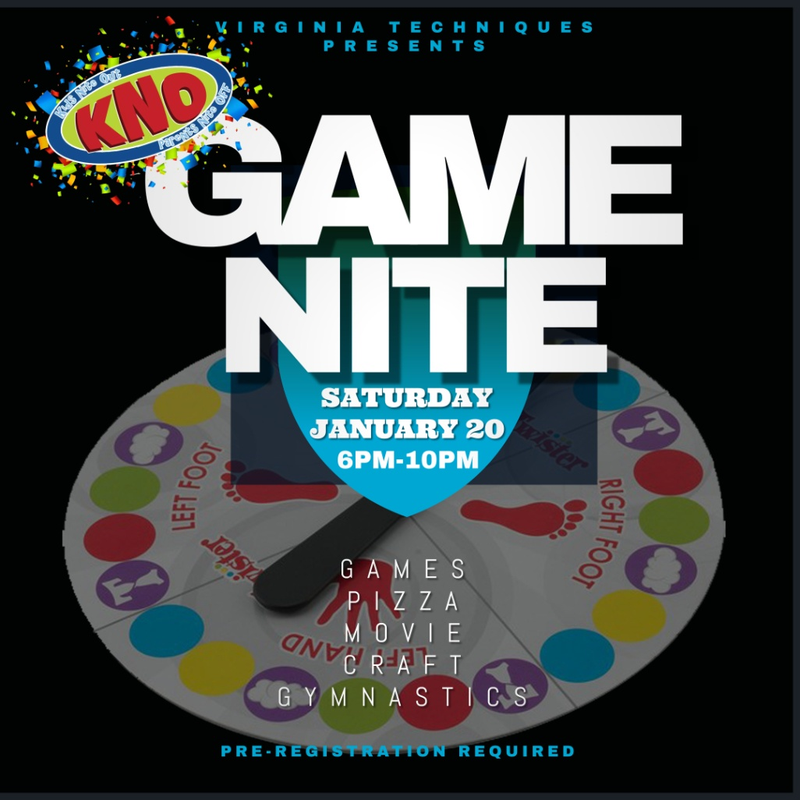 Virginia Techniques Training Center presents Kids Nite Out - Game Nite on Saturday, January 20, 2024.