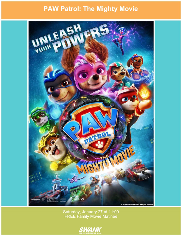 The Radford Public Library continues their Family Movie Matiness with the film "Paw Patrol: The Mighty Movie" on Saturday, January 27, 2024.