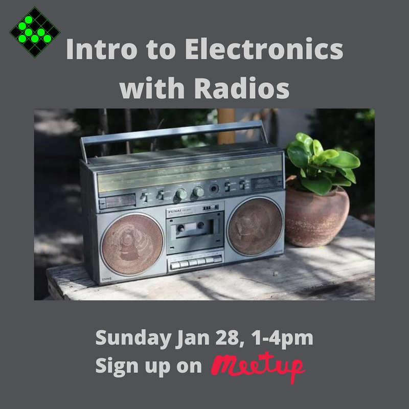 Hacksburg presents an Intro to Electronics with Radios Class on Sunday, January 28, 2024.