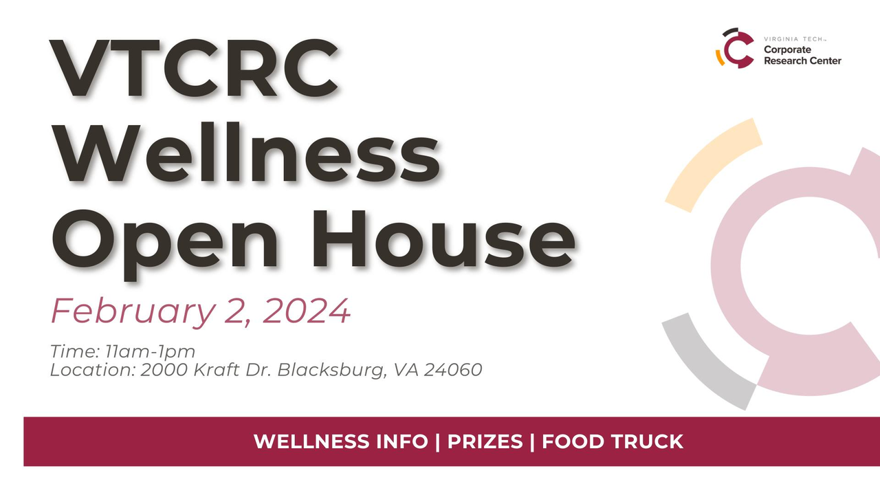 The Virginia Tech Corporate Research Center presents a VTCRC Wellness Open House on Friday, February 2, 2024.