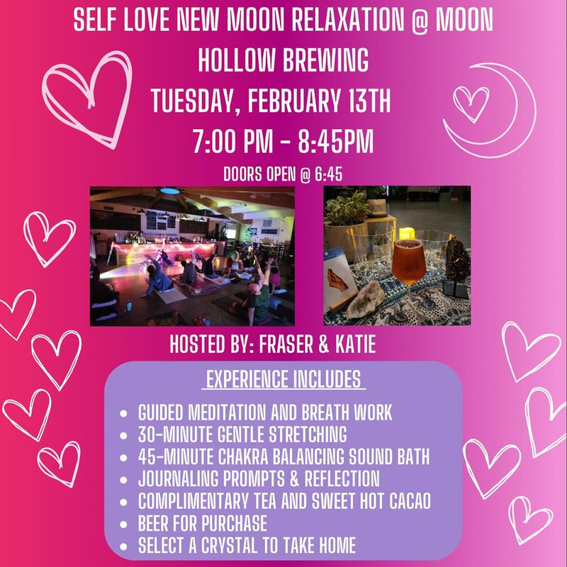 Sprout Wellness presents Self Love New Moon Meditation, Stretching, and Sound Bath Relaxation on Tuesday, February 13, 2024 at Moon Hollow Brewing.