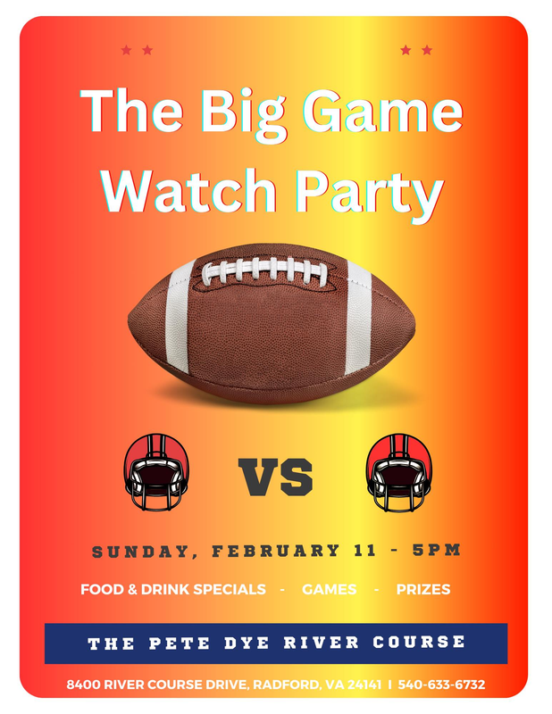 The Pete Dye River Course presents The Big Game Watch Party on Sunday, February 11, 2024.