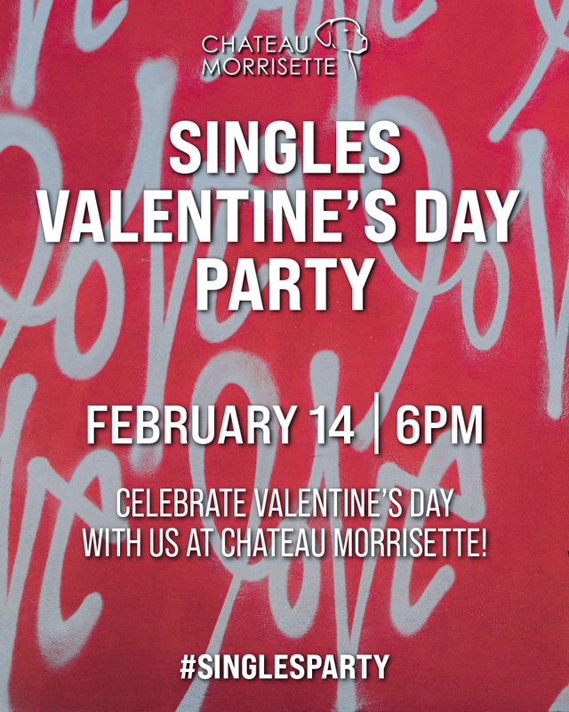 Chateau Morrisette presents a Singles Valentine's Day Party on Wednesday, February 14, 2024.