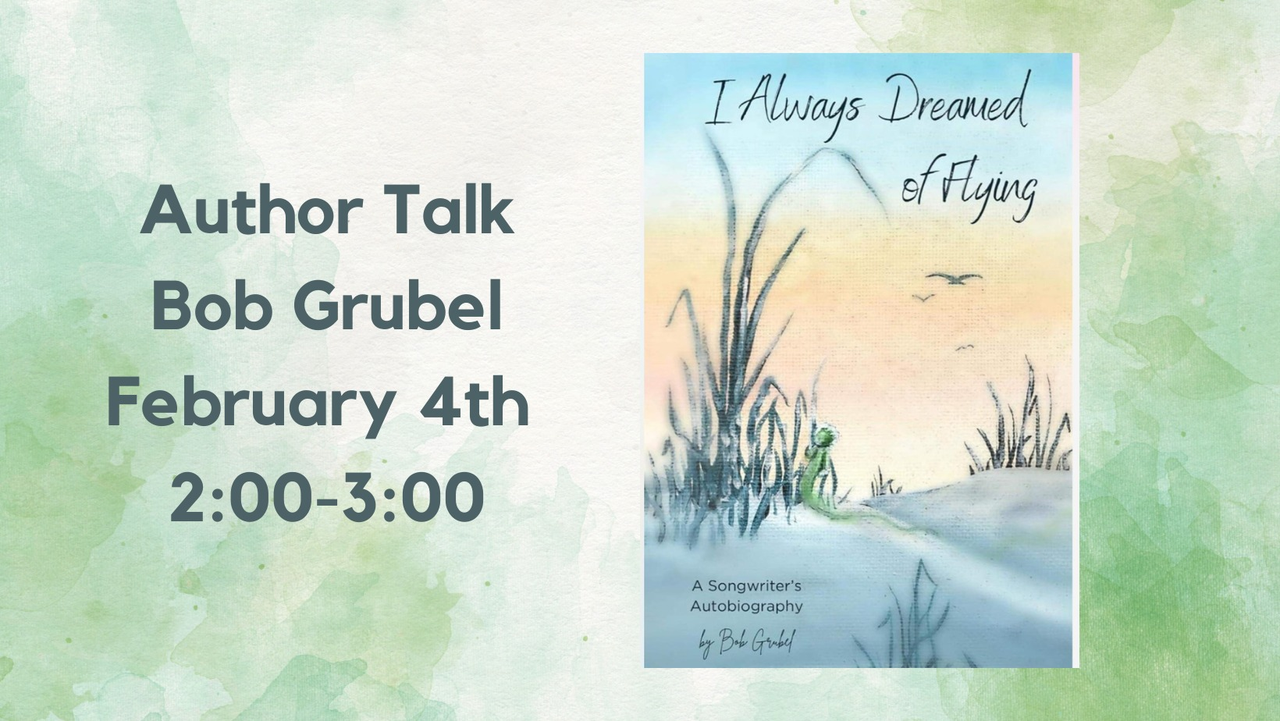 Bob Grubel will be sharing some reading and a few songs from his recently published book "I Always Dreamed of Flying: A Songwriters Autobiography".