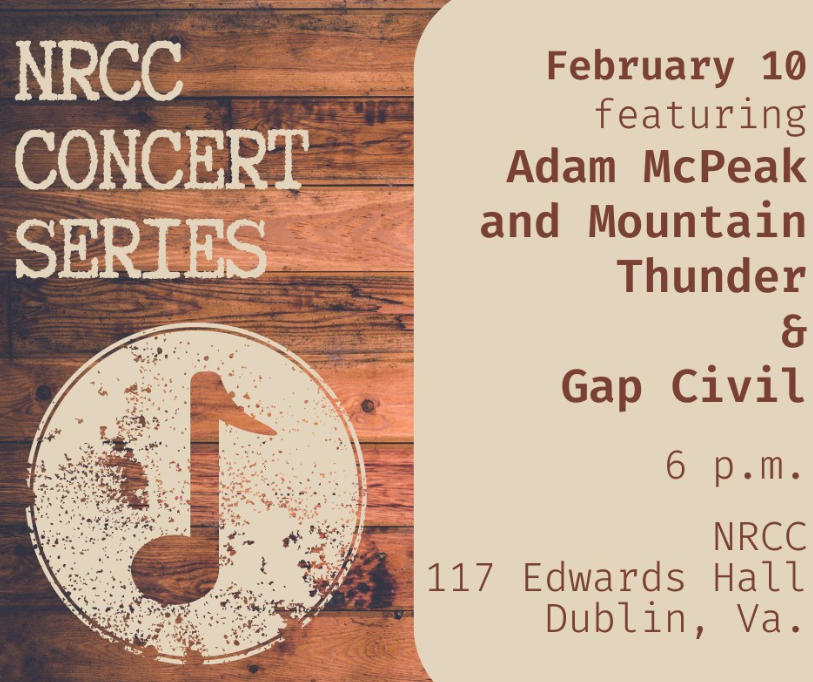 New River Community College's Concert Series brings you a night of music featuring Adam McPeak & Mountain Thunder and Gap Civil on Saturday, February 10, 2024 inside Edwards Hall on New River Community College's Dublin, VA campus.