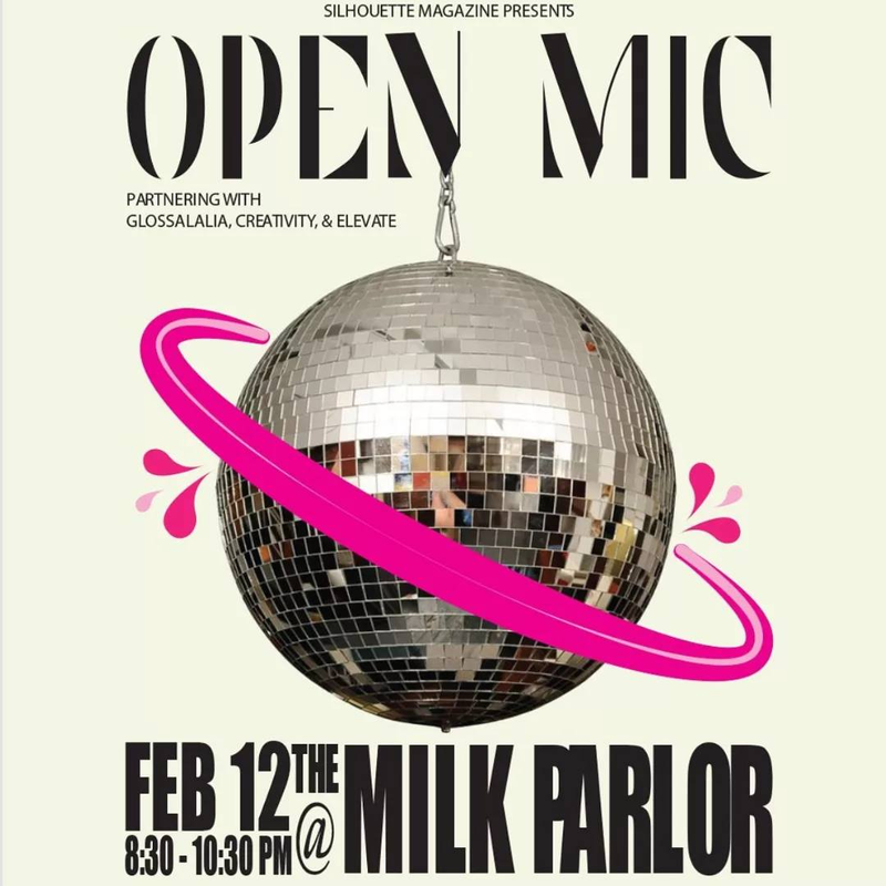 Silhouette Magazine presents an Open Mic on Monday, February 12, 2024 at The Milk Parlor.