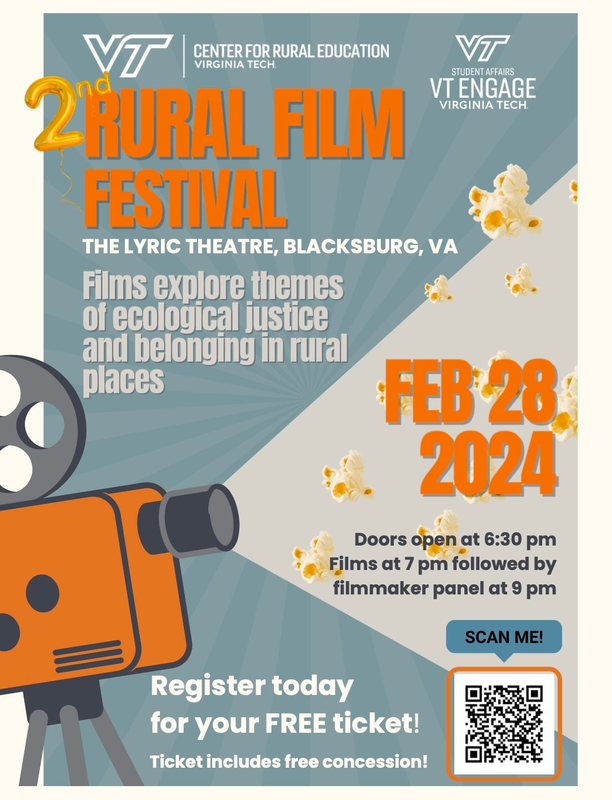 The Center for Rural Education at Virginia Tech and VT Engage presents the 2nd Annual Rural Film Festival on Wednesday, February 28, 2024 at The Lyric Theatre.