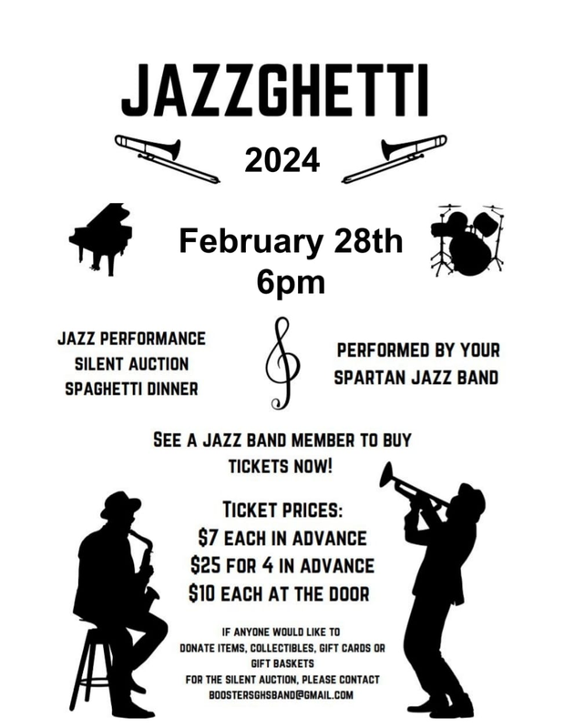 To purchase a ticket in advance, see a Jazz Band Member of contact boostersghsband@gmail.com.