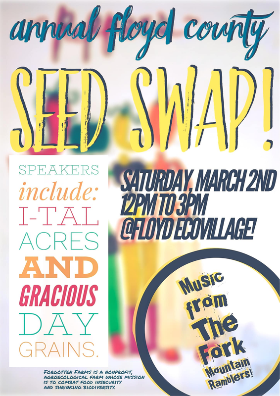The Floyd EcoVillage presents the Annual Floyd County Seed Swap Potluck on Saturday, March 2, 2024.