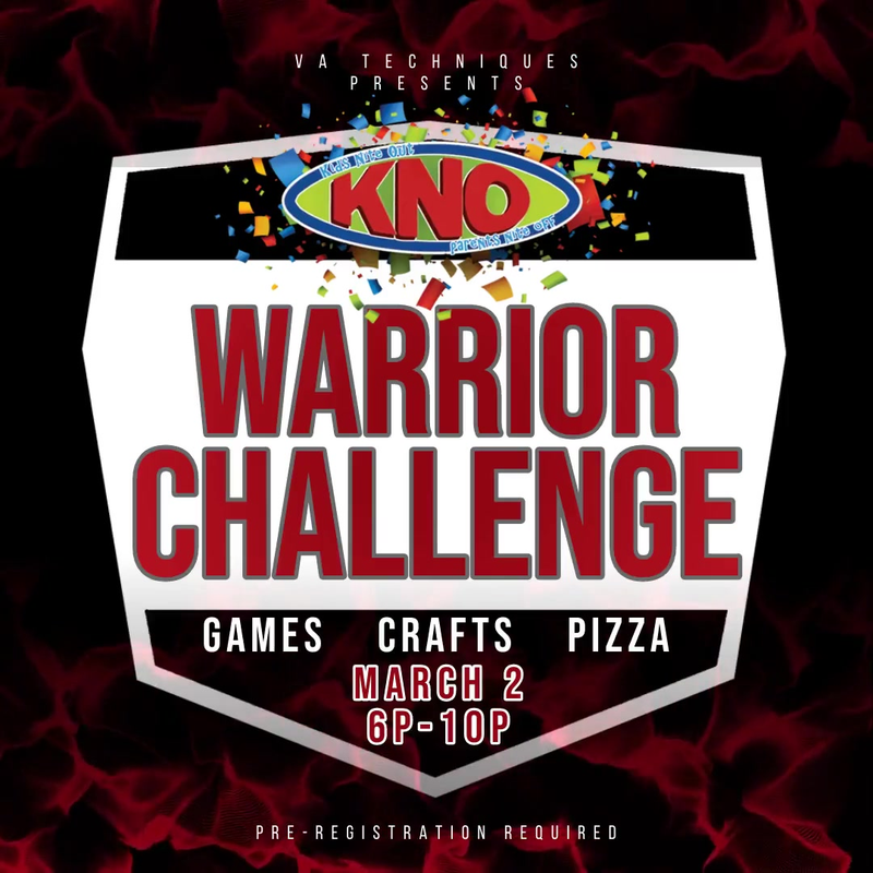 The Virginia Techniques Training Center presents a Kids Nite Out with a Ninja Warrior Challenge theme on Saturday, March 2, 2024.