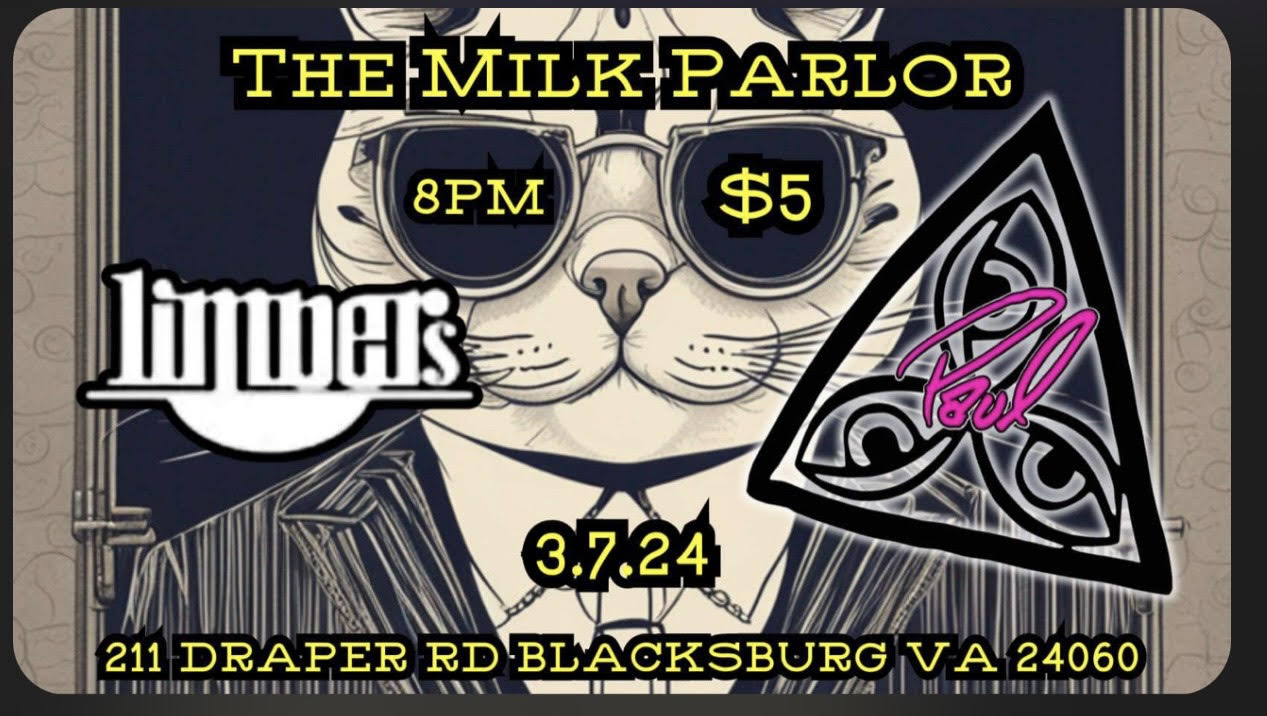 The Milk Parlor presents the Limbers and The Band of Paul in concert on Thursday, March 7, 2024.
