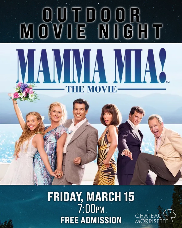 Chateau Morrisette presents a Movie Night On The Lawn featuring "Mamma Mia" on Friday, March 15, 2024.