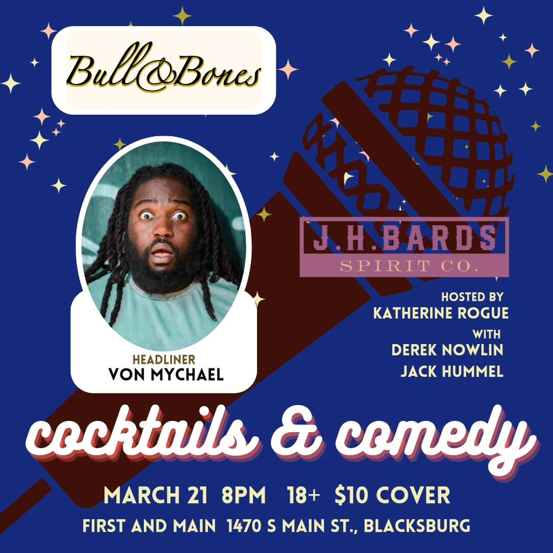 Comedians Gone Rogue presents Cocktails & Comedy with Headliner Von Mychael on Thursday, March 21, 2024 at Bull & Bones Brewhaus & Grill.
