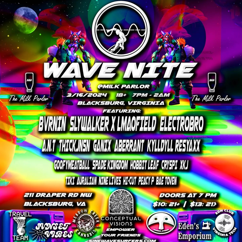 Your Wave family is stoked to return to Blacksburg! Join us for the cool flows, hot fire bass and activate that next level of consciousness.