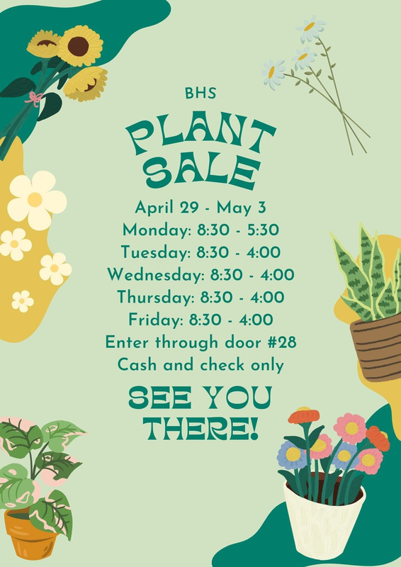 The 2024 Blacksburg High School Plant Sale will be held at Blacksburg High School Greenhouse starting on Monday, April 29, 2024 and continuing through Friday, May 3, 2024.