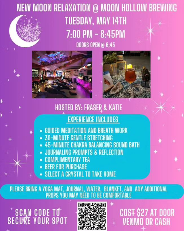 Sprout Wellness presents New Moon Meditation, Stretching, and Sound Bath Relaxation on Tuesday, May 14, 2024 at Moon Hollow Brewing.