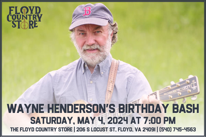 The Floyd Country Store presents Wayne Henderson's Birthday Bash on Saturday, May 4, 2024.