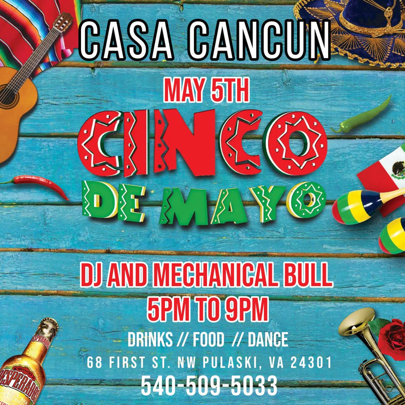 Casa Cancun Mexican Steakhouse presents a Cinco De Mayo Celebration with DJ and Mechanical Bull on Sunday, May 5, 2024.