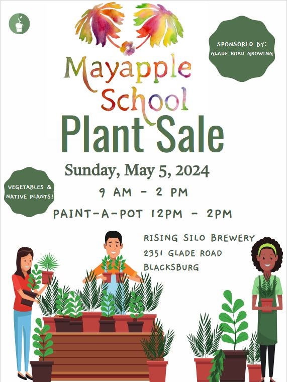 Proceeds benefit the Mayapple School and is sponsored by Glade Road Growing.