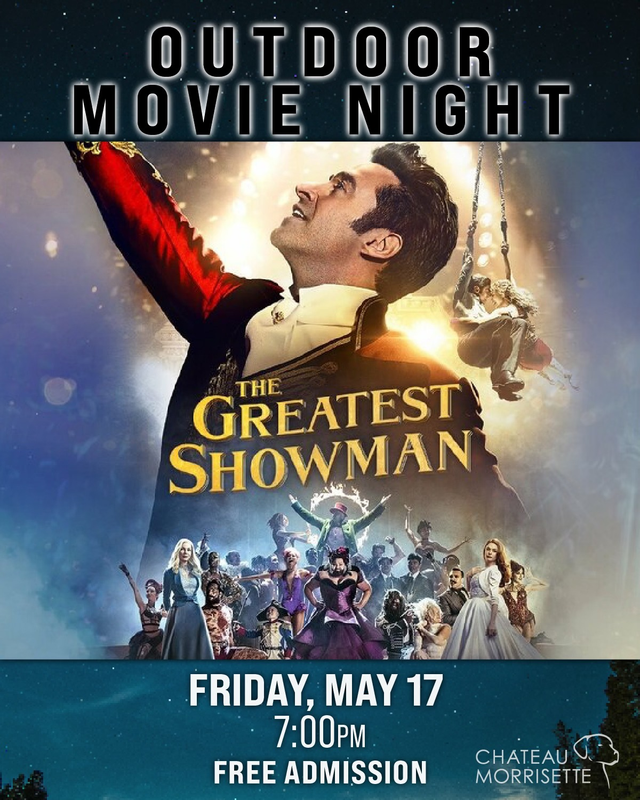 Chateau Morrisette presents an Indoor Movie Night featuring "The Greatest Showman" on Friday, May 17, 2024.
