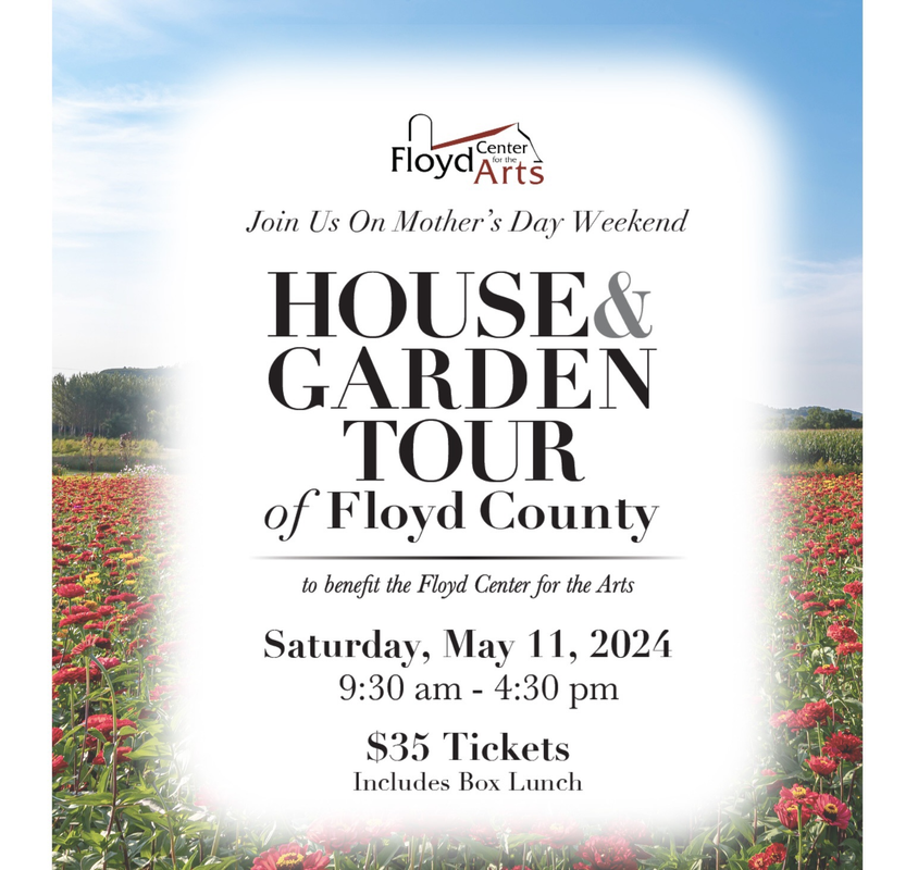 The Floyd Center for the Arts presents the 8th Annual House & Garden Tour of Floyd County on Saturday, May 11, 2024 at multiple locations in Floyd County.