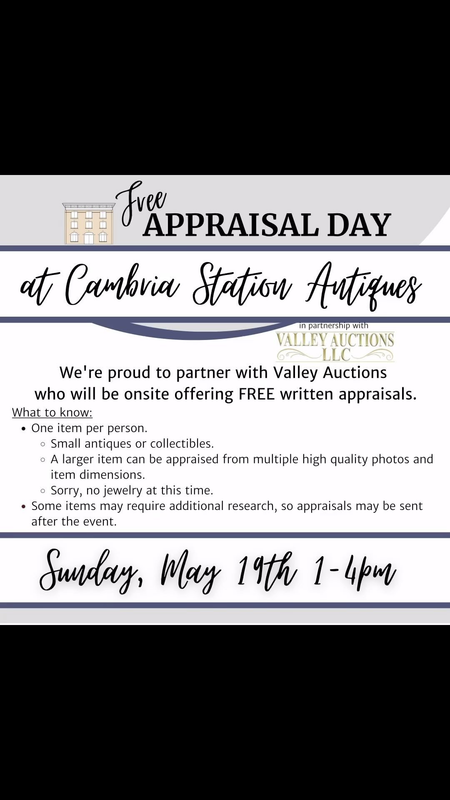 Cambria Station Antiques presents a Free Appraisal Day on Sunday, May 19, 2024.