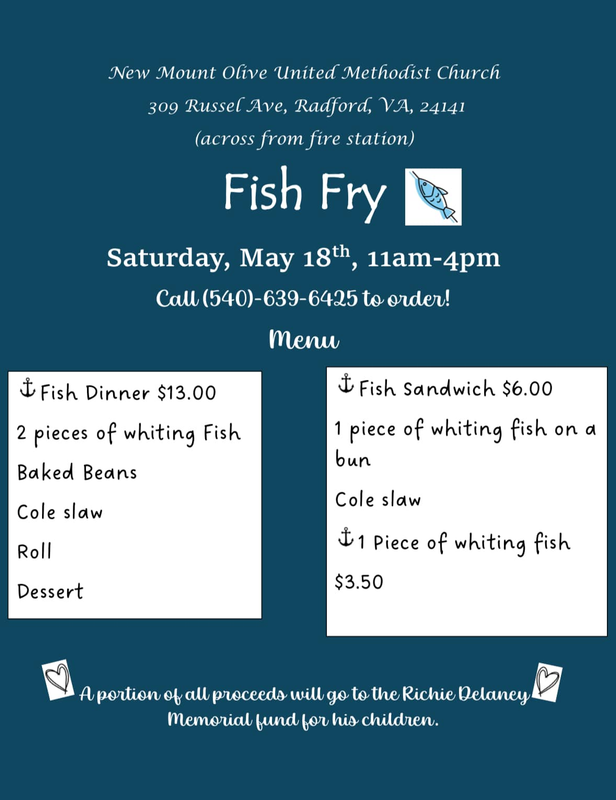 The New Mount Olive United Methodist Church presents a Fish Fry Fundraiser on Saturday, May 18, 2024.