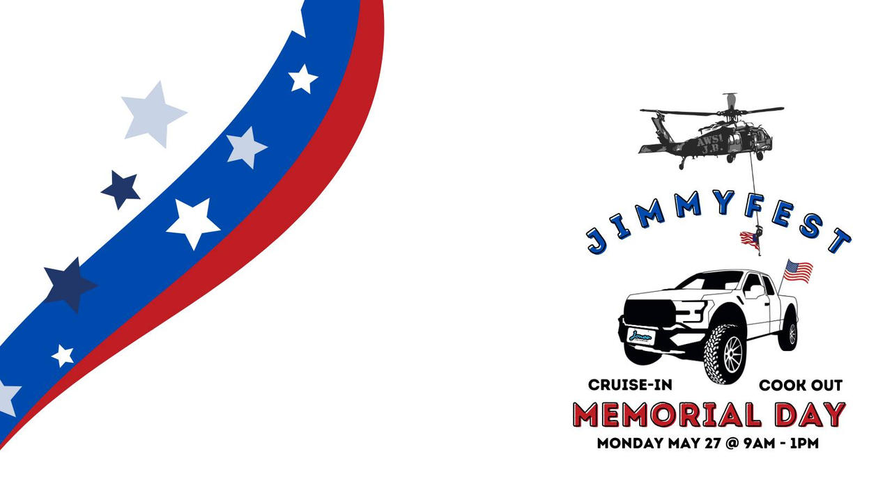 Jones Car Company presents the 3rd Annual Jimmyfest Cruise-In and Cook Out on Monday, May 27, 2024.