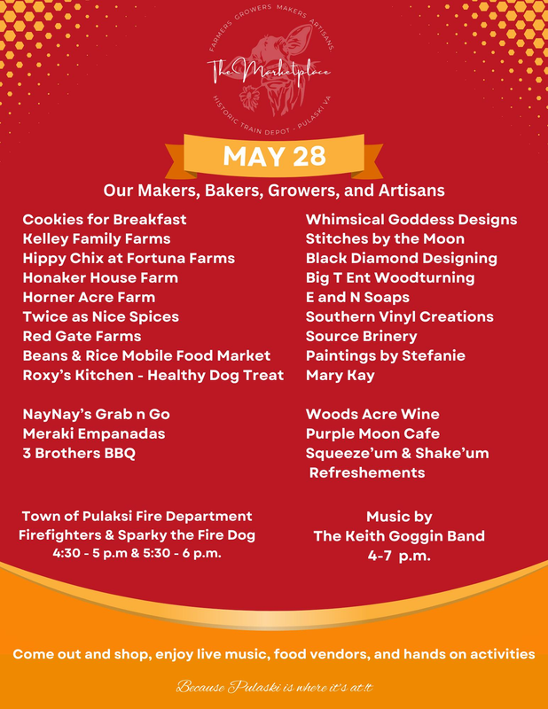 The Marketplace continues with music from The Keith Goggin Band on Tuesday, May 28, 2024 at the Pulaski Train Station.