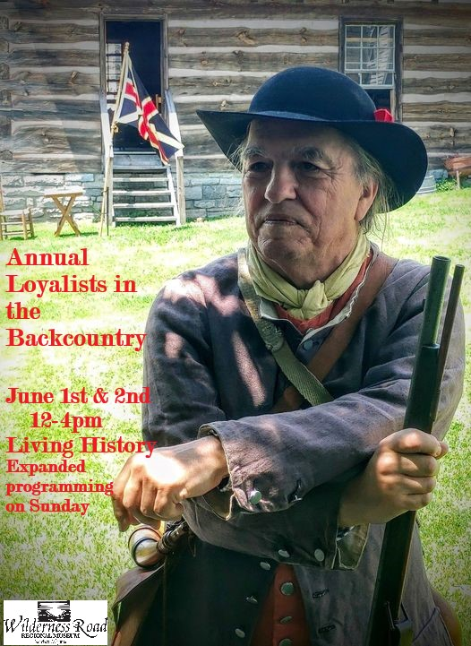 The Wilderness Road Regional Museum presents the Annual Loyalists in the Backcountry Event on Saturday, June 1, 2024 and Sunday, June 2, 2024 from 12:00-4:00 PM both days.