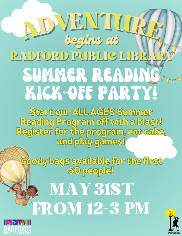 The Radford Public Library presents Summer Reading Kick-Off Party on Friday, May 31, 2024.