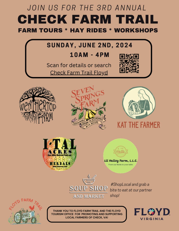 Floyd Country Tourism presents the 3rd Annual Check Farm Trail at seven participating farms and businesses throughout Check, Virginia on Sunday, June 4, 2023.