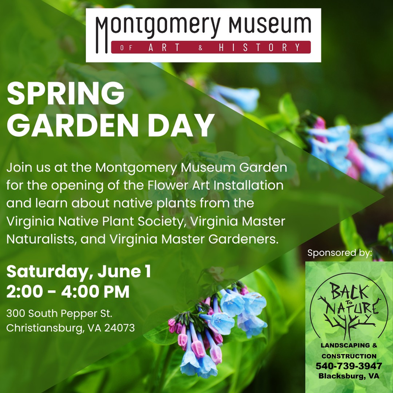 The Montgomery Museum of Art & History Gardens presents their Spring Garden Day on Saturday, June 1, 2024 at the Montgomery Museum Garden in Christiansburg, VA.