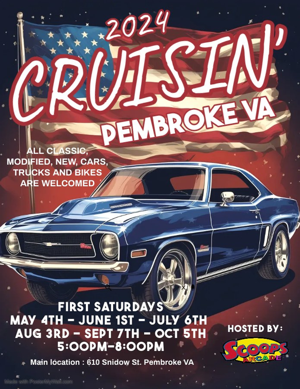 Scoops Arcade continues their 2024 Cruisin' Nights Finale on Snidow Street in downtown Pembroke, VA on Saturday, October 5, 2024.